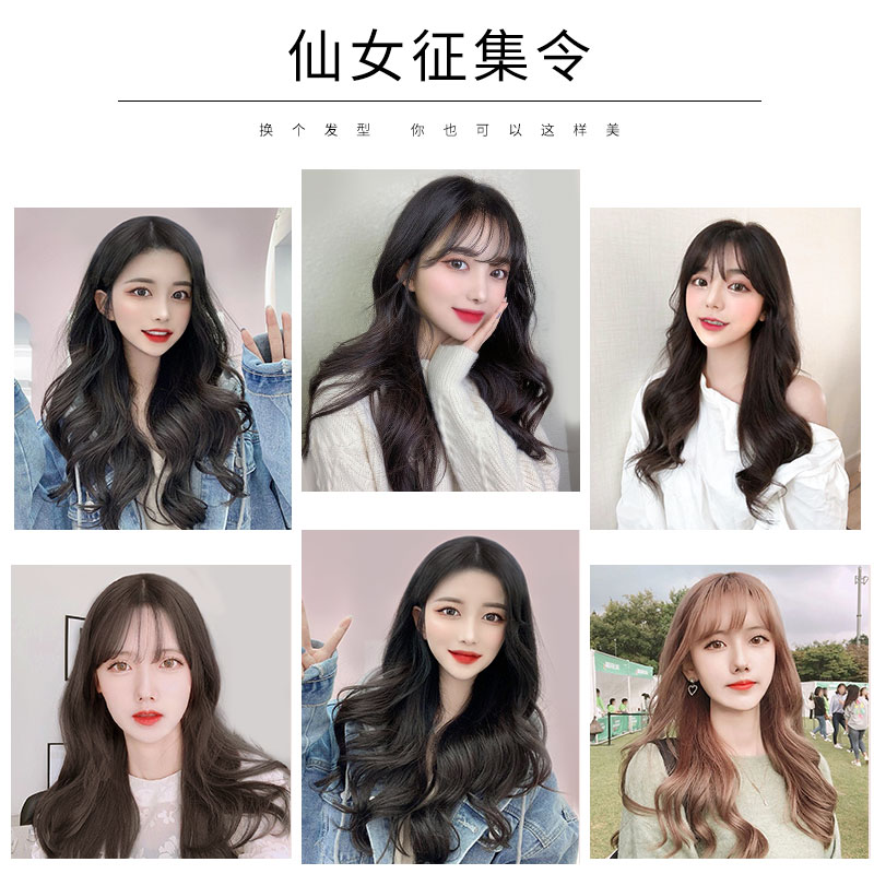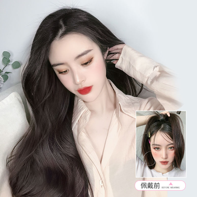 Wig female long hair micro curl wig piece Hair extension patch piece invisible traceless U-shaped long curl big wave