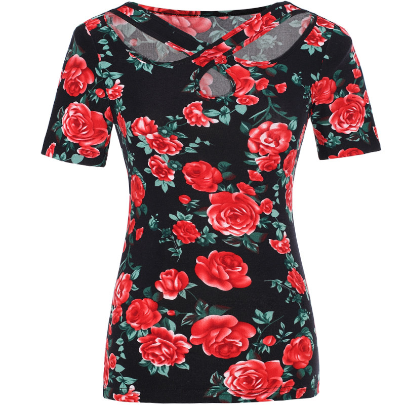 Red One-Piece Top Red Rose Short Sleeves