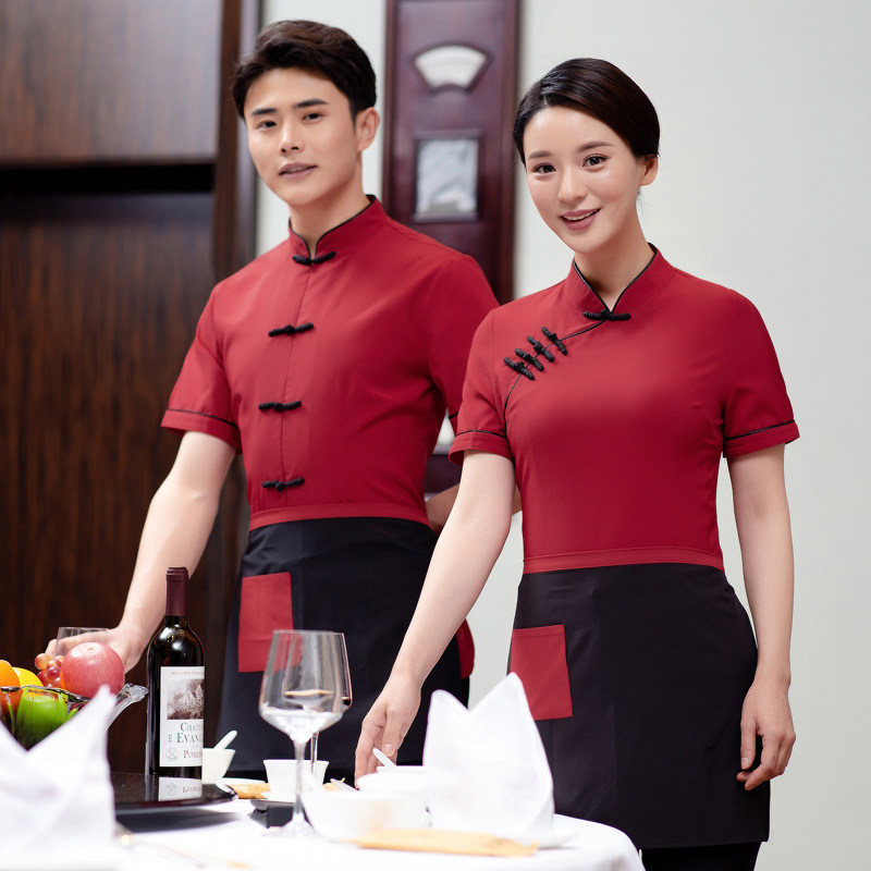 Chinese Attendants Work Clothes Short Sleeves Breathable China Wind Tea Building Hotel Hotel Fire Pot Shop Farmhouse Le Summer-Taobao