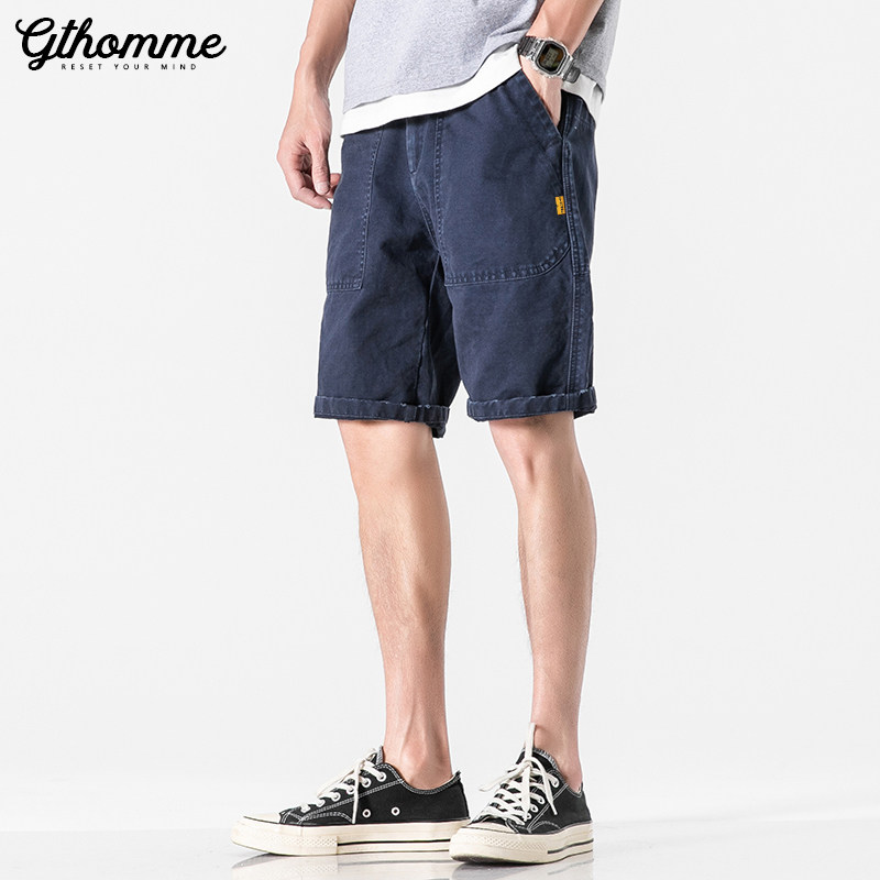 Summer New Men Tooling Shorts Loose Straight Drum Trendy Casual Mid Pants 100 Lap Outside Wearing 50% Pants Thin