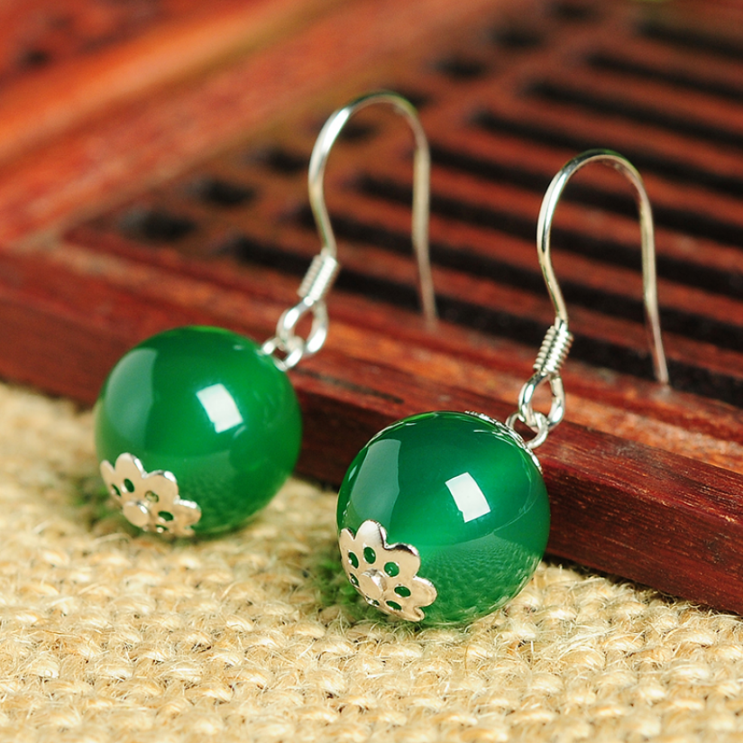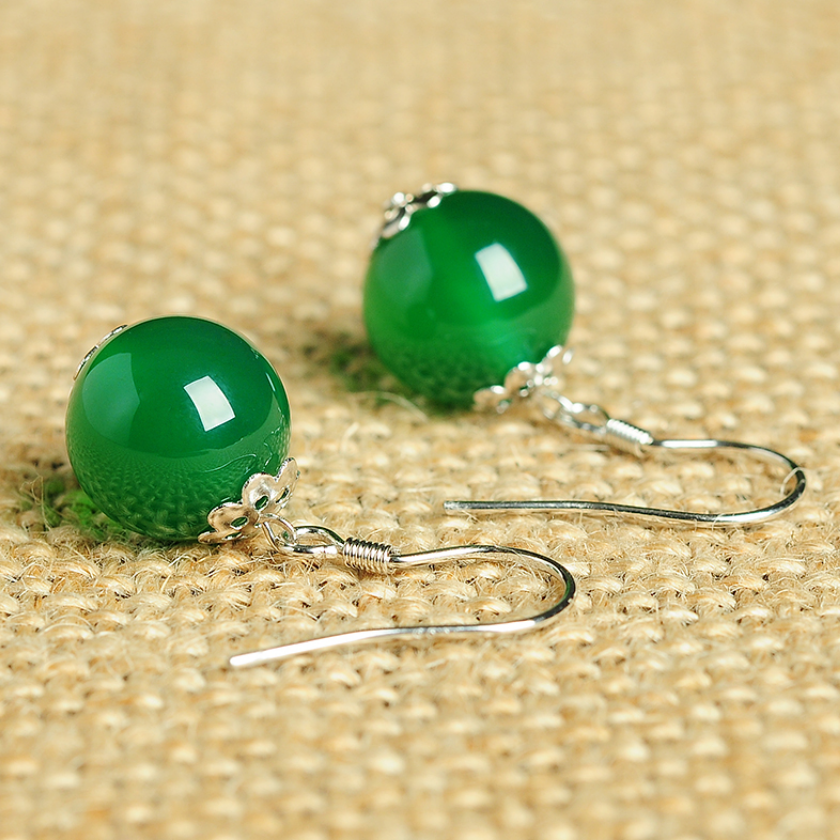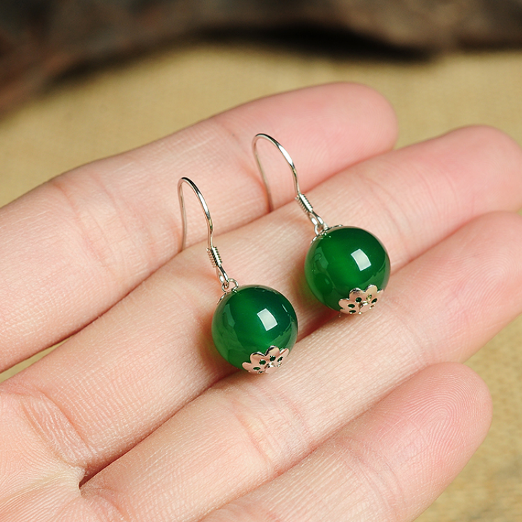 Original 925 silver inlaid with natural green jade medullary beads ear pendant fashion brief female jade medullary beads earrings earrings