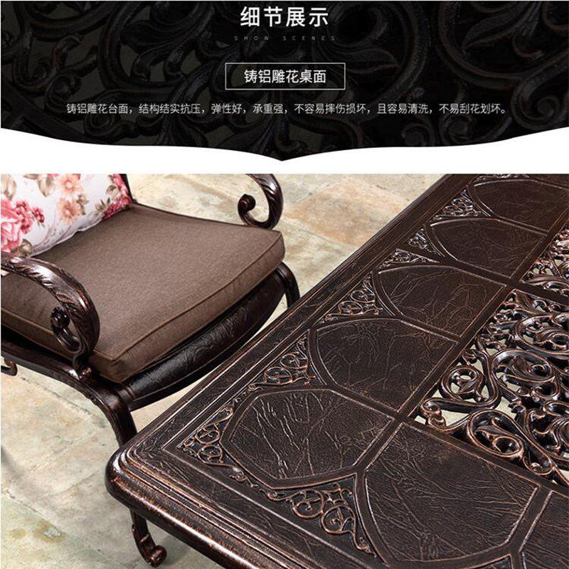 6 1 (cast aluminum long table 210X114) 8 1 (cast aluminum long table 210X114) a cast aluminum long table single table 210X1142 cast aluminum chairs (including cushions and pillows)