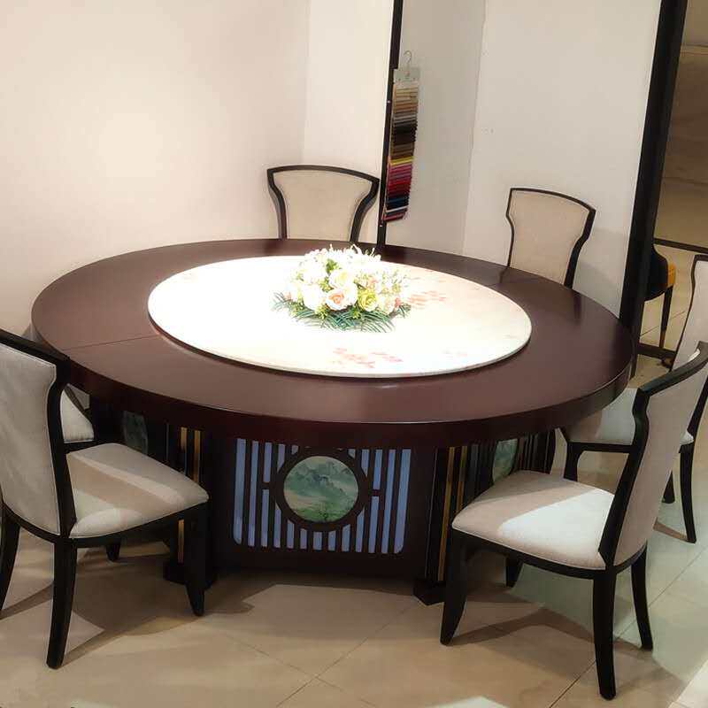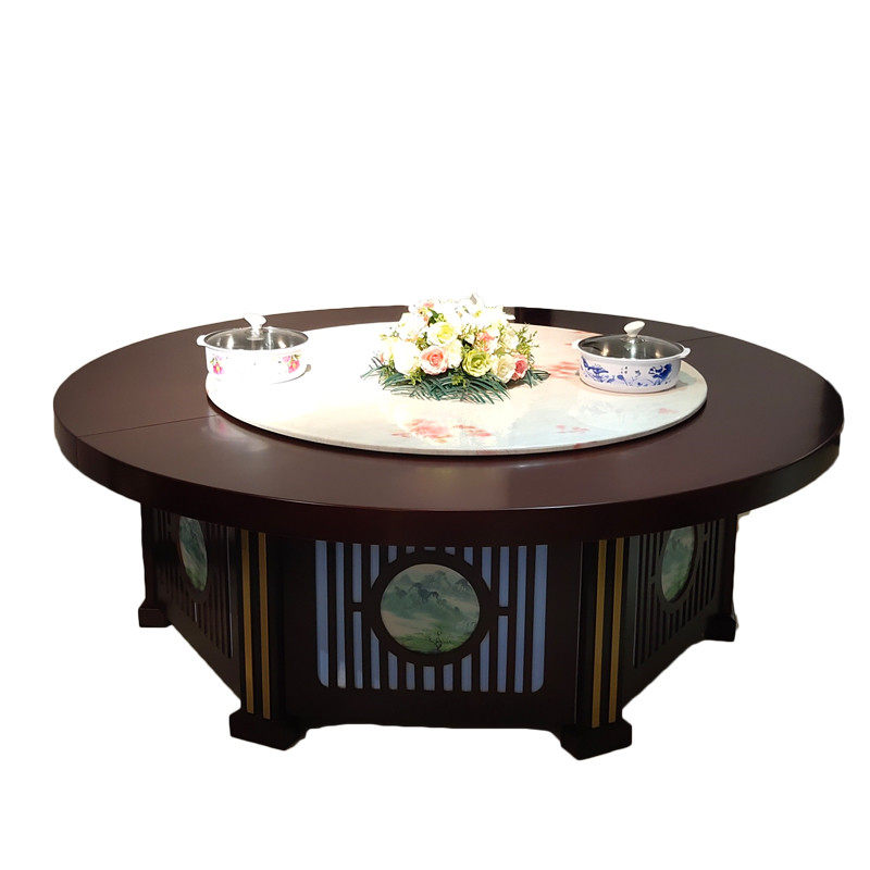 Hotel Electric Dining Table Big Round Table Induction Cooktop Automatic Turntable Rotary Pack Compartment Hot Pot Big Round Table Hotel Round Table And Chairs