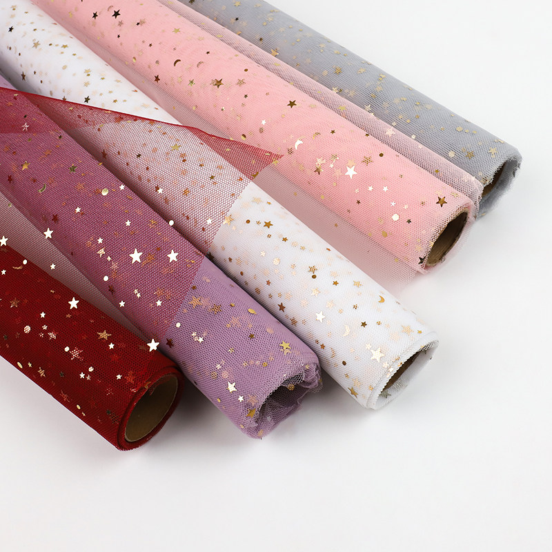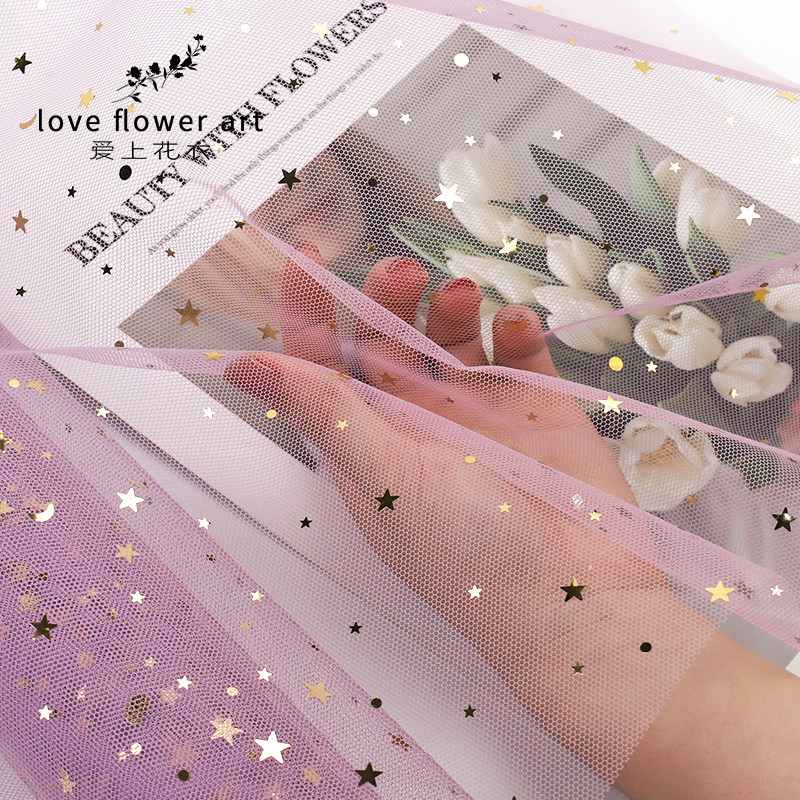 Bronzing Star Moon Yarn Flowers Bouquet Wrapping Paper Web Yarn Rose Gauze Bag Flowers Materials Floral Accompaniment Courtesy Star Yarn-Taobao