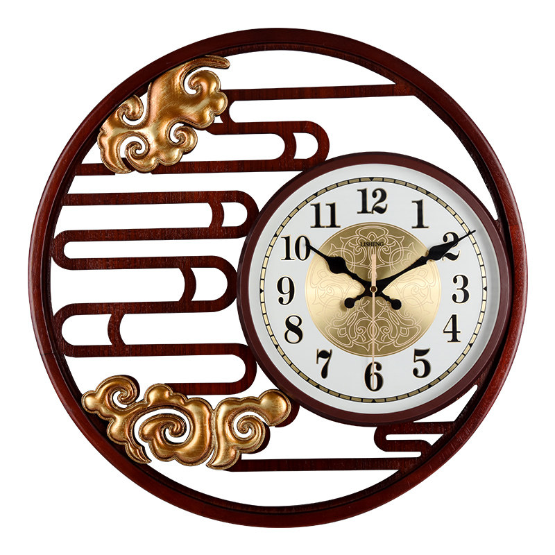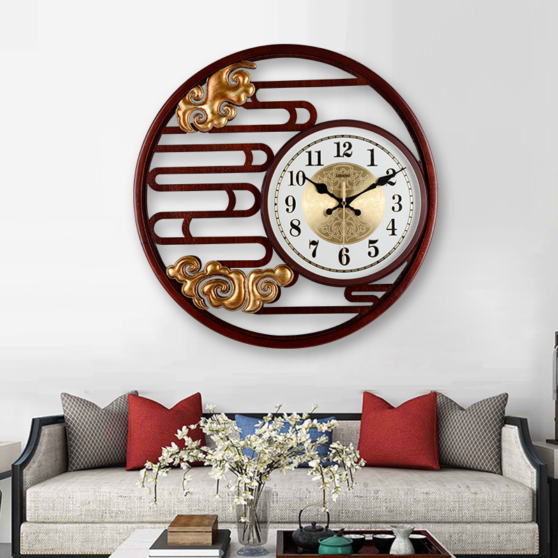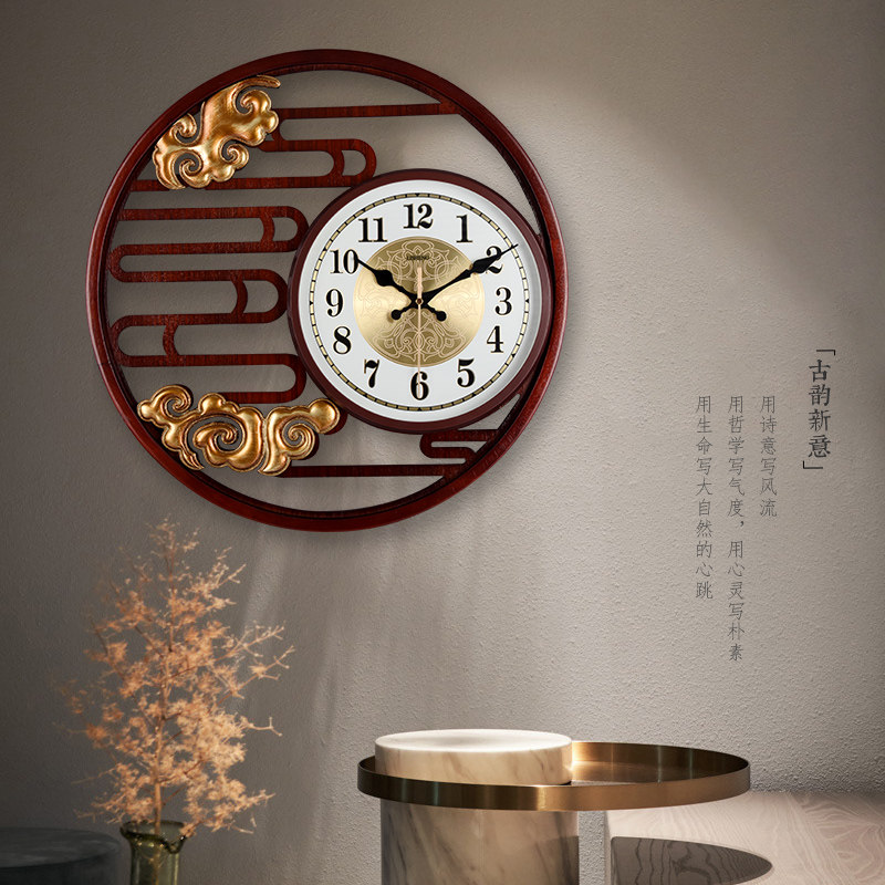 New Chinese solid wood hanging bell living room mute hanging wall China wind retro quartz art Table Extreme minimalist Atmosphere decoration-Taobao