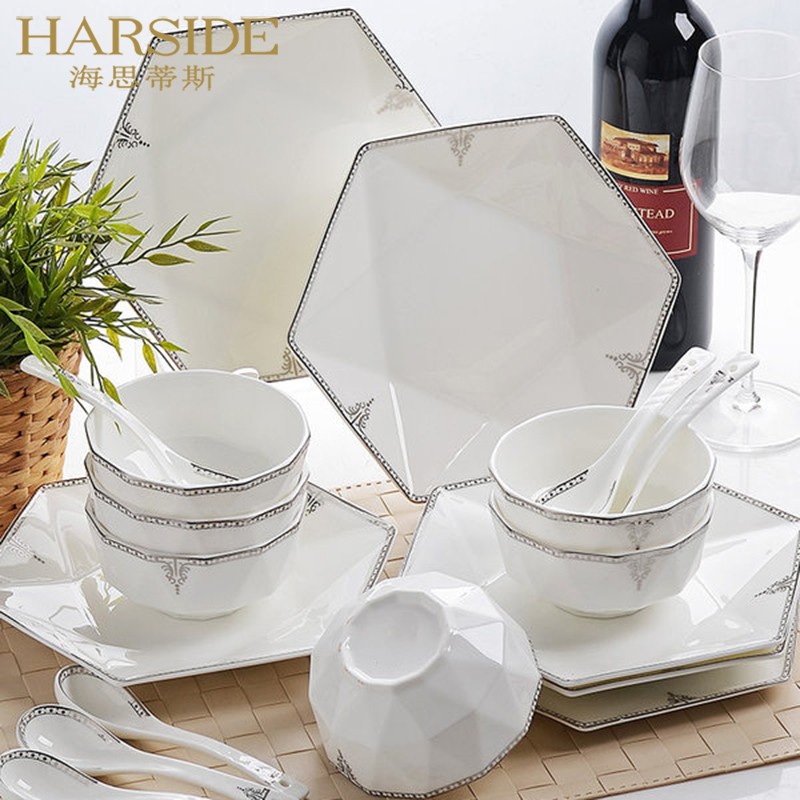 HARSIDE European-style bone china tableware set Chinese-style household creative ceramic bowl plate plate rice bowl chopsticks combination