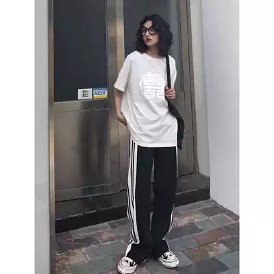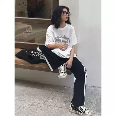 Pregnant women pants loose Sports wide leg pants 2021 spring and summer Korean version of casual side stripes straight tube wear trousers summer clothes