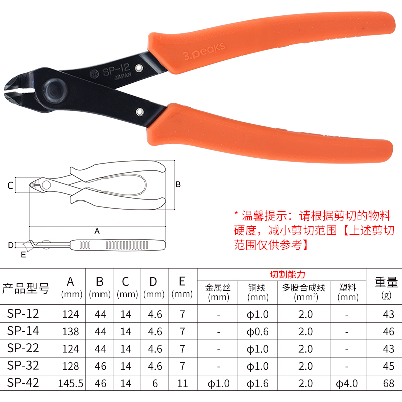Japan imports 3 pesks 3 mt. SP-12 14 22 22 42 42 Mouth Electronic hand cut pliers mouth pliers