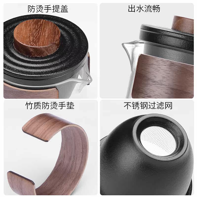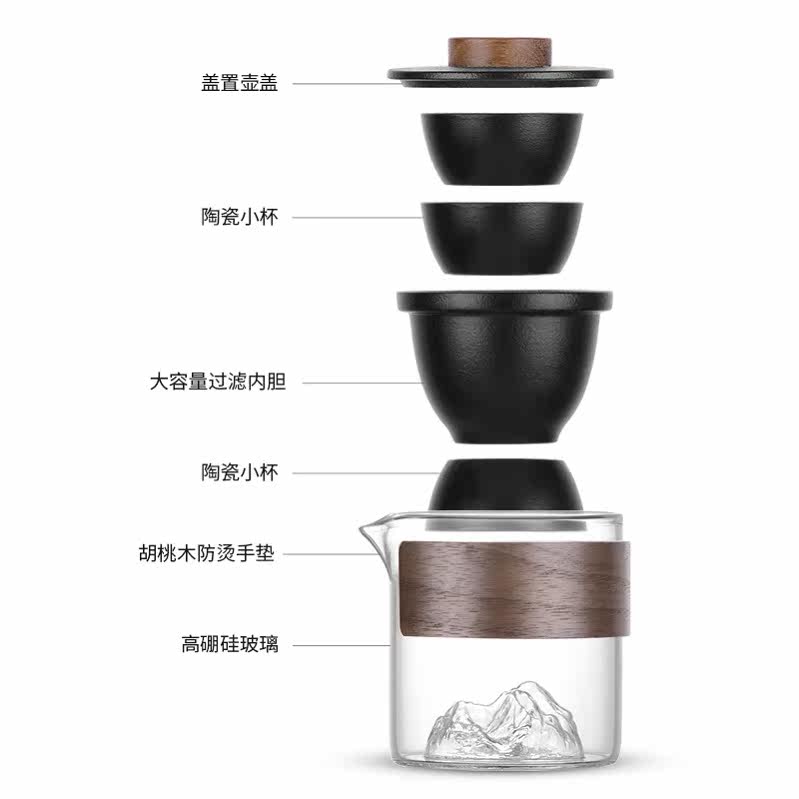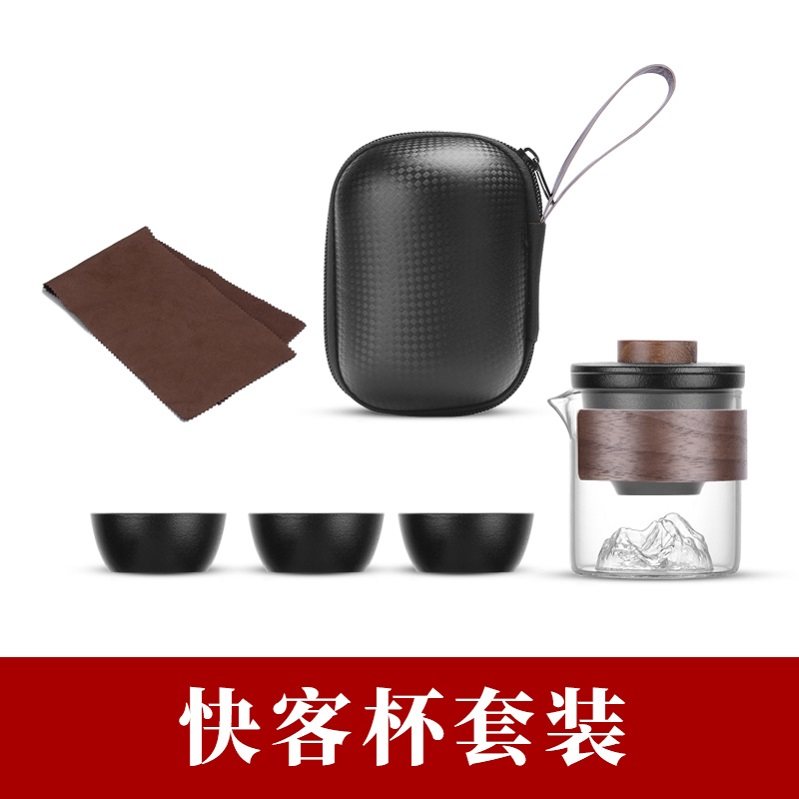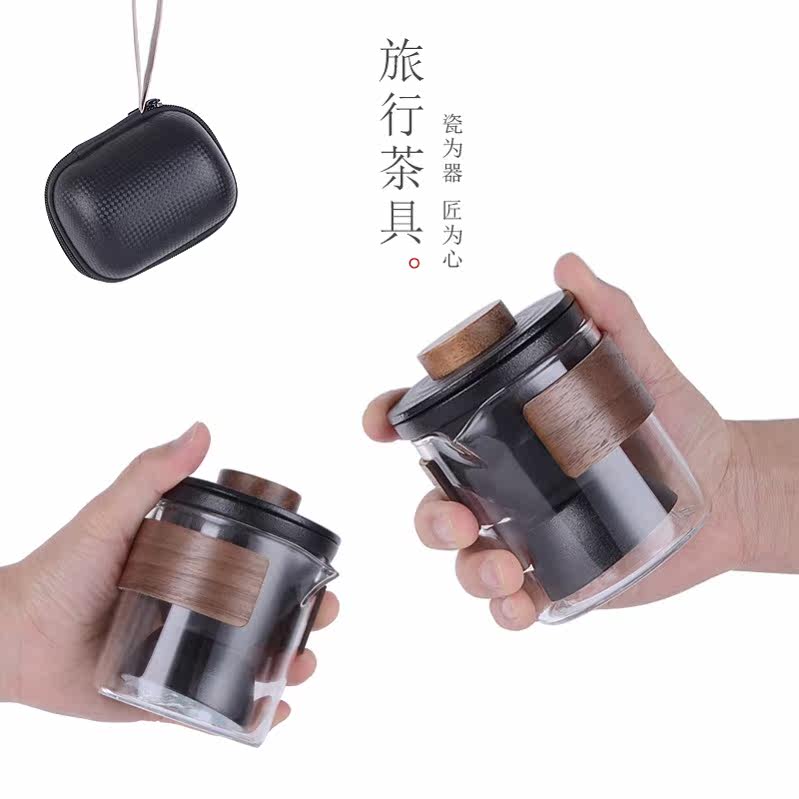 Taiwan 76 travel tea set tea making artifact outdoor portable set transparent glass wooden handle with cover Hemu tea cup