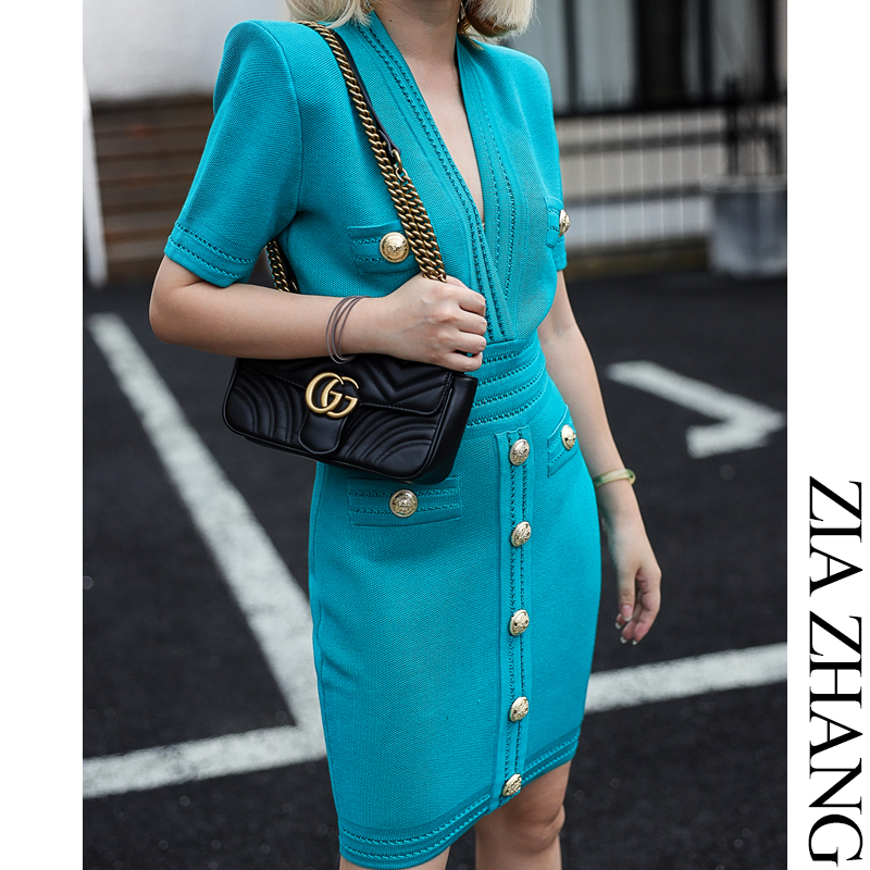 Zhu lock with 1 kg loss of the same high - fashion knife wear - dress deep V - fit dress