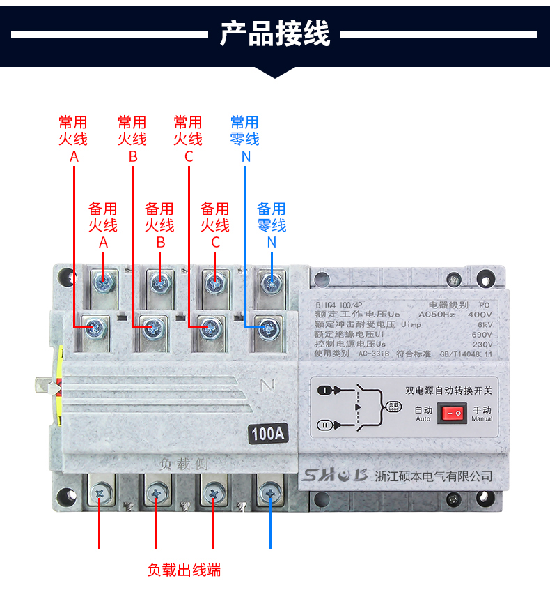 Isolated dual power supply automatic transfer switch 4P switcher PC level 63A100A200A250A400A630A