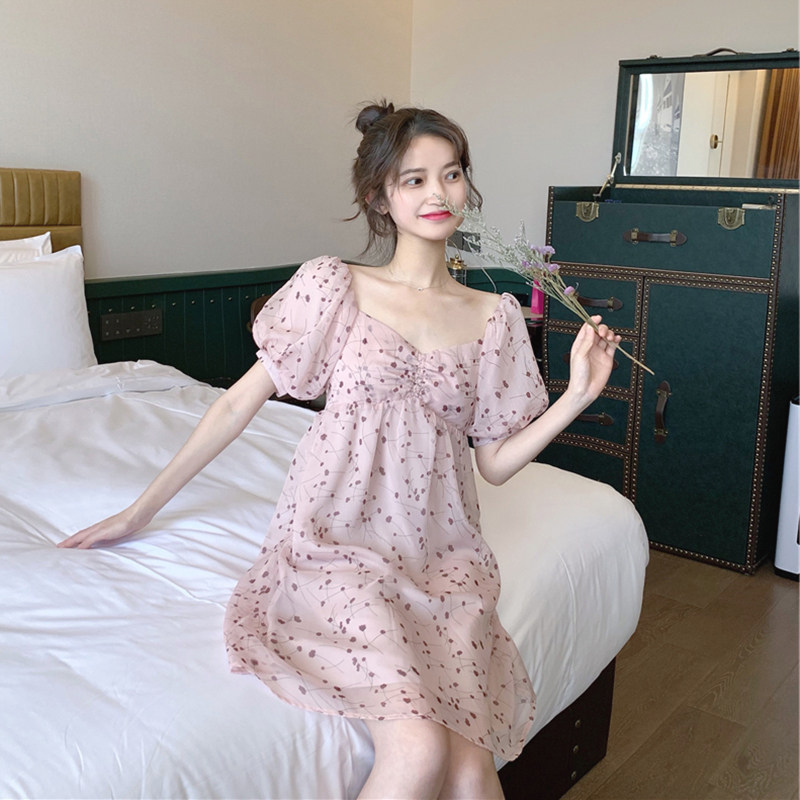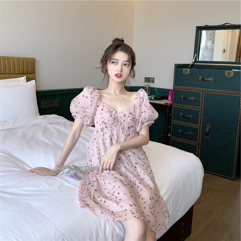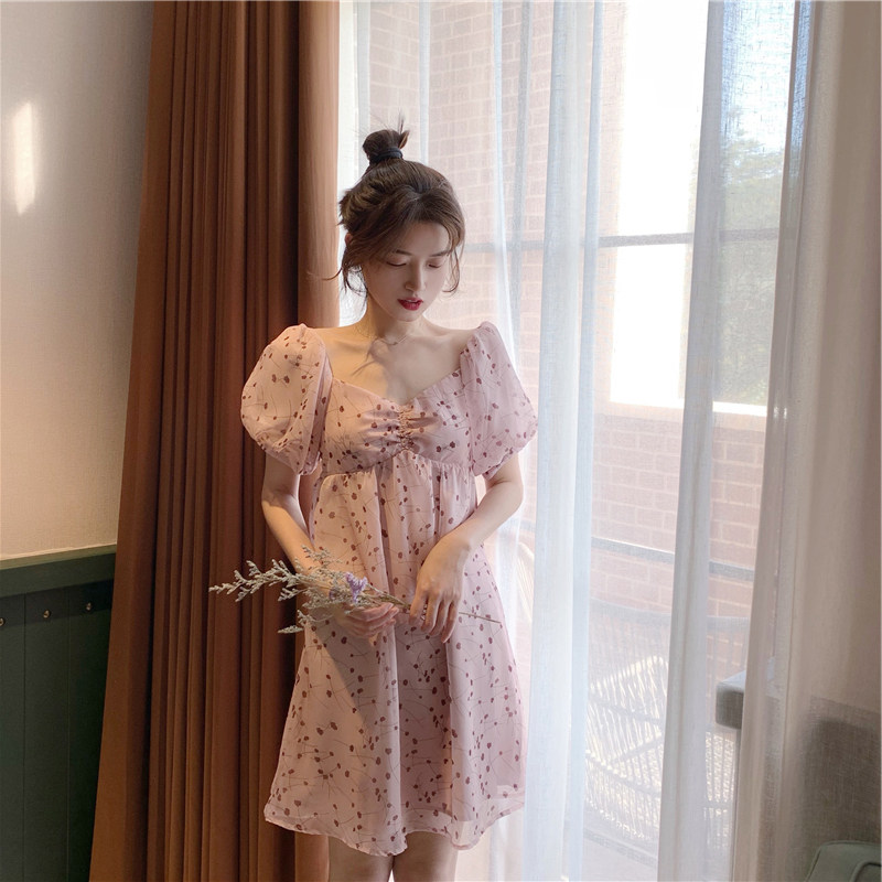 New 2022 Yuanyuan Sweet Fresh Platycodon Skirt First Love Nepotism Nepotism Nepotism Bubble Sleeves Small Crummy Floral Ocean Dress Women Summer