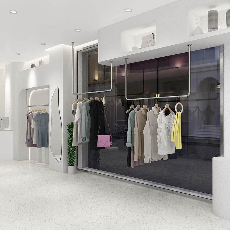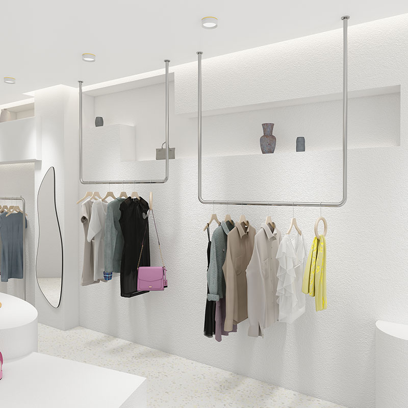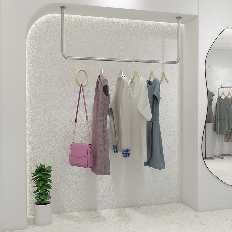 Clothing store display rack Silver hanging ceiling Stainless steel hanging display rack Hanger hanger upper wall hanging ring Women's clothing shelf