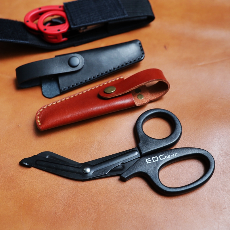 EMT Military Gauge With Teeth Courting Rescue Scissors Cut Fabric Cut Wire Medical Emergency Field Survival EDC Bull Leather Sleeve