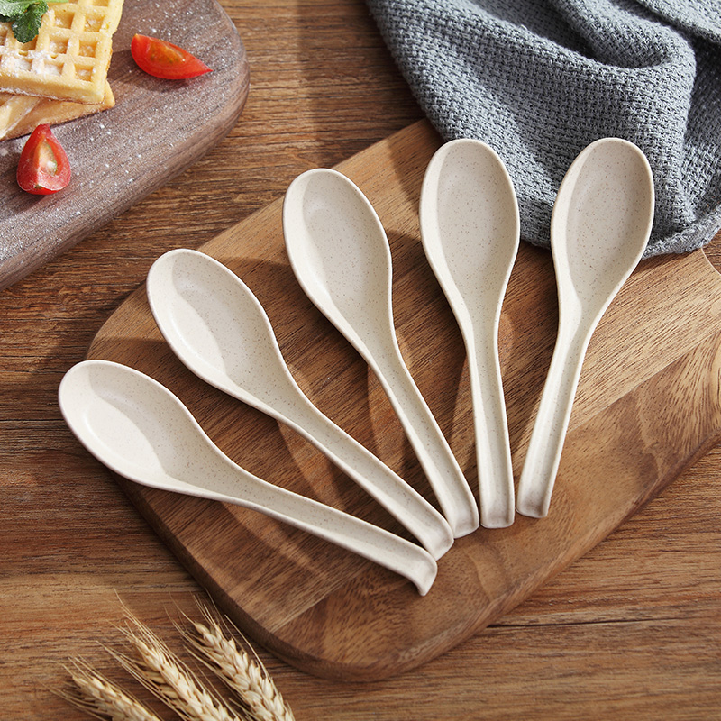 Wheat straw long handle spoon home portable meal drink soup large spoon cute commercial spice spoon 10 sticks set