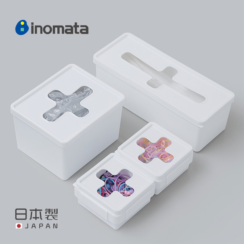 inomata Japan imported sundries desktop storage box garbage bag storage box gloves with lid cross storage box