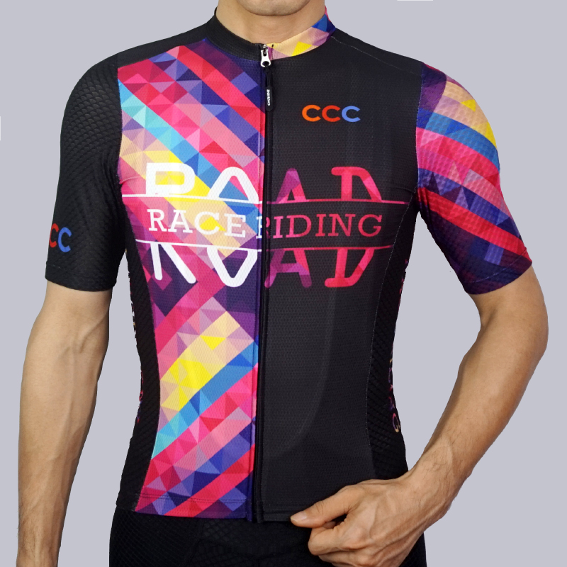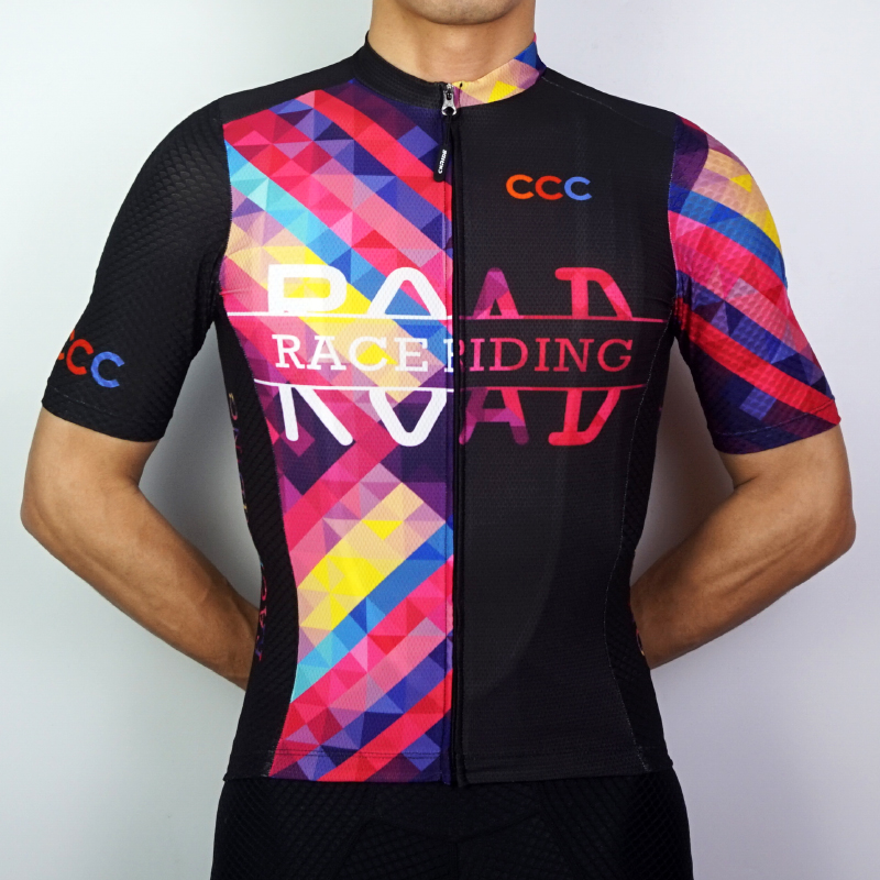 Summer new mesh rhombus color contrast color short-sleeved cycling clothing professional road mountain bike men's and women's tops