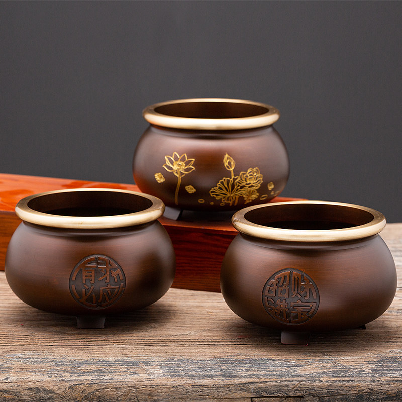Lotus Buddha home burning incense burner antique pure copper incense burner for Buddha home worship ancestors indoor God of Wealth incense bowl temple