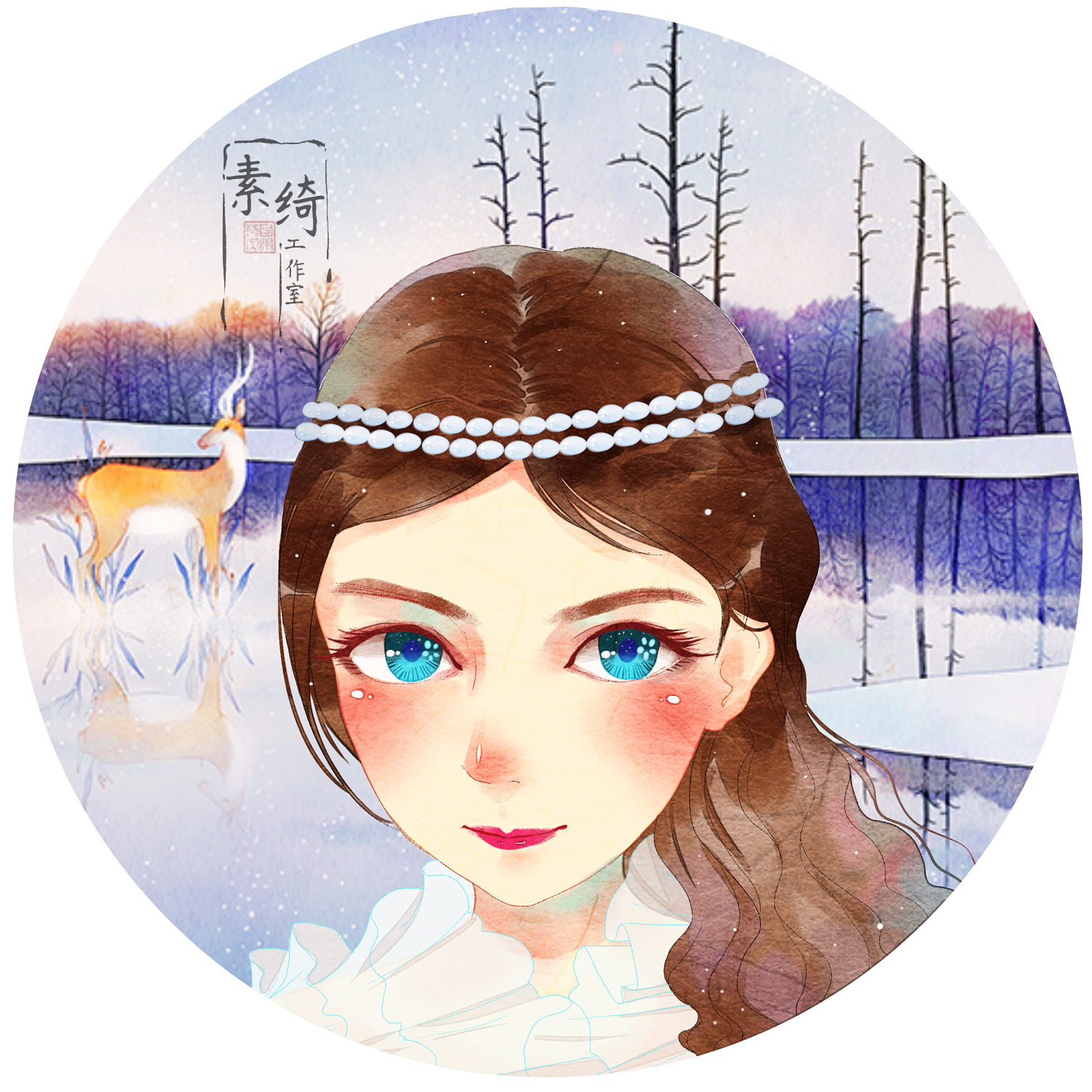 Q Prints Hand-painted Avatar Custom Watercolor Ancient Wind Manga Wedding Invited Cambodia Photo Design Couple Birthday Gift about manuscript
