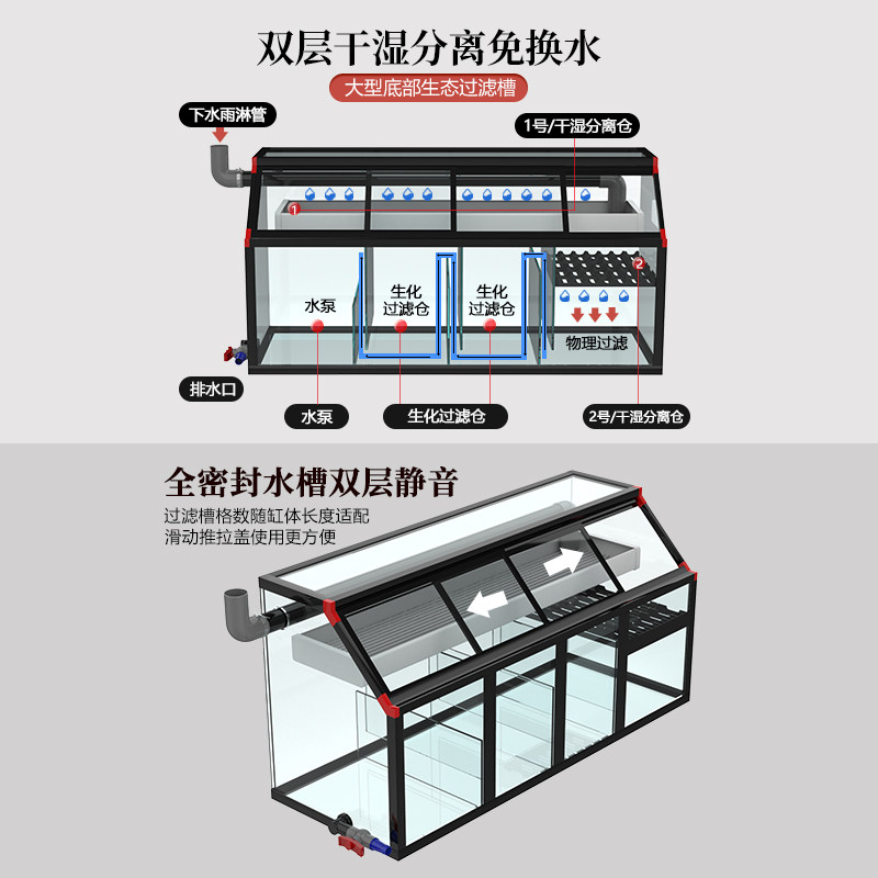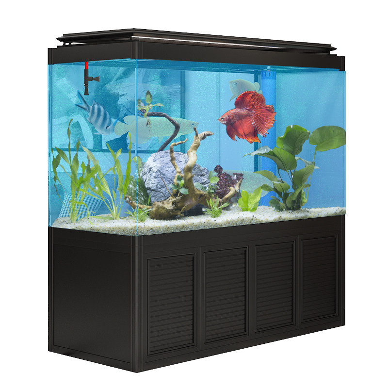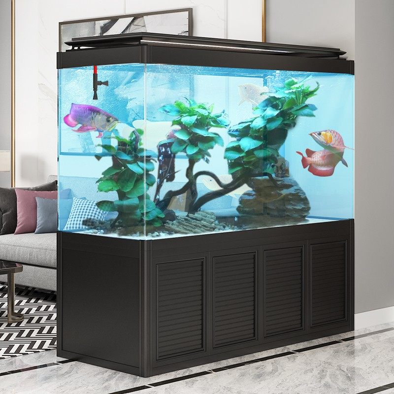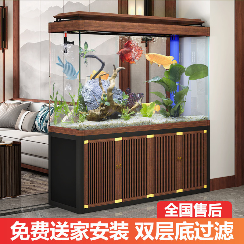 Large floor-to-ceiling fish tank living room aquarium home Chinese wood grain ultra-white partition wall screen porch glass bottom filter