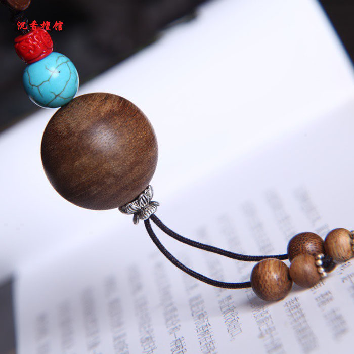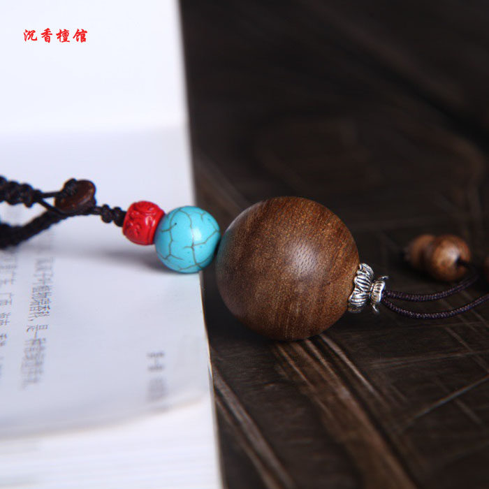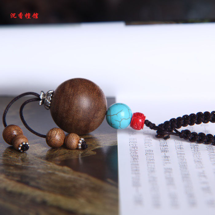 Agarwood single bead car key hanging creative pendant net red personality key lanyard male and female high-end handmade key chain