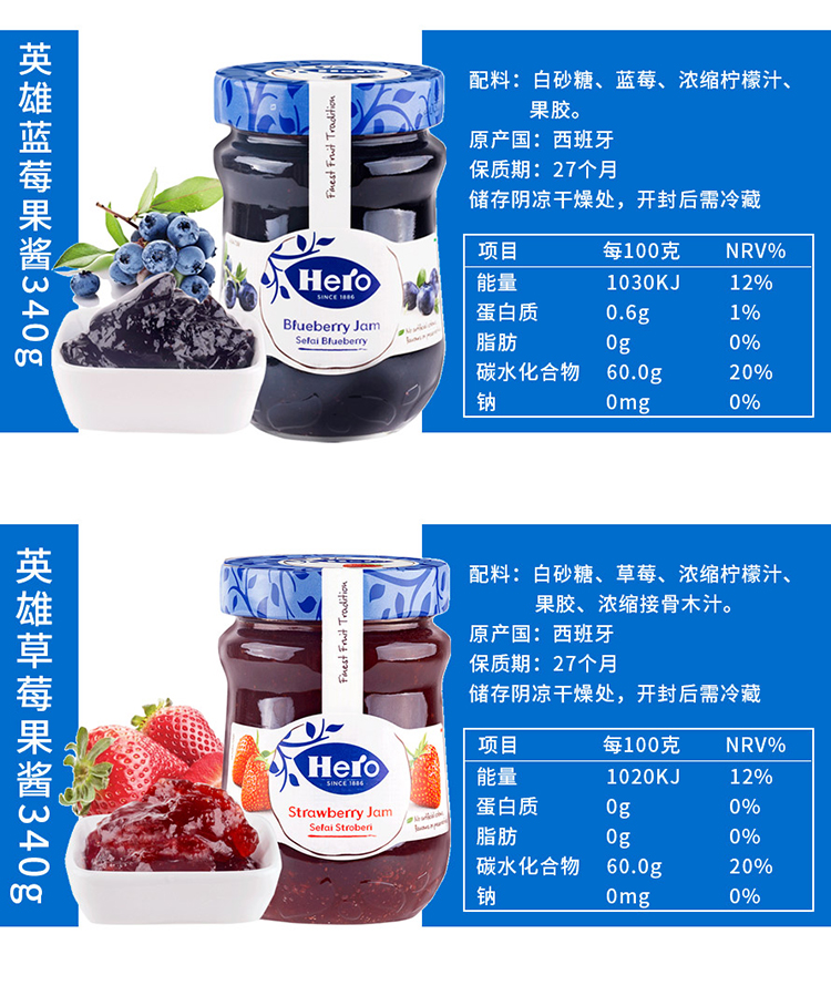 Hero Strawberry Jam Hero Blueberry Jam Hero Raspberry Jam Hero Cherry Jam Forest Fruit Jam Hero Apricot Jam