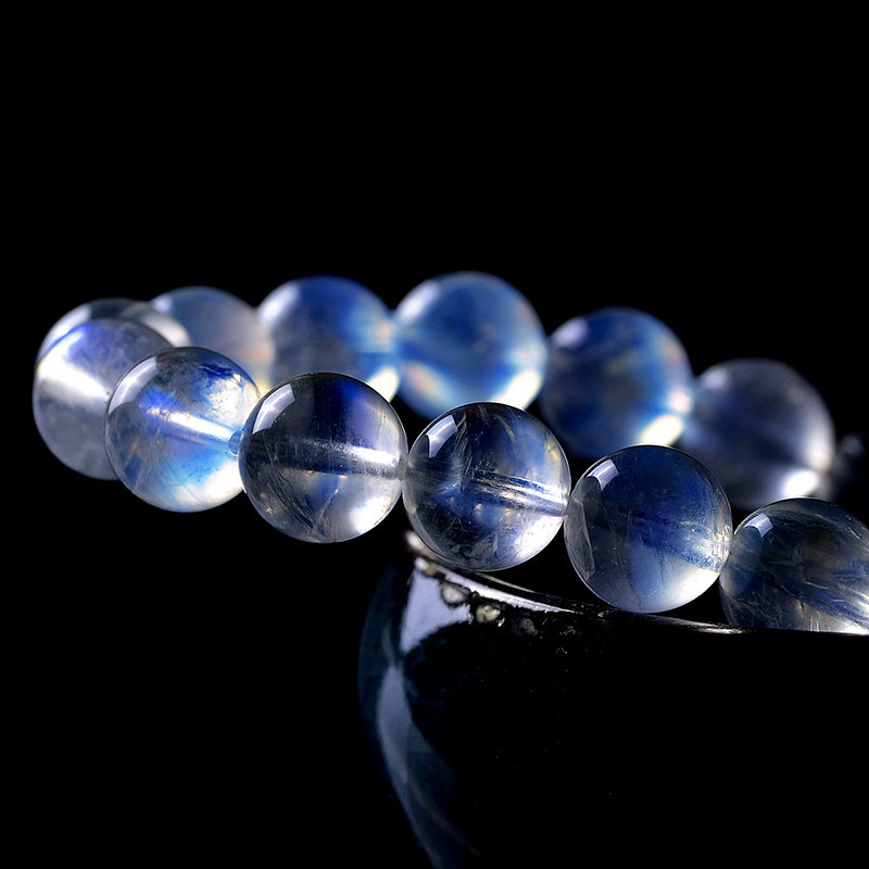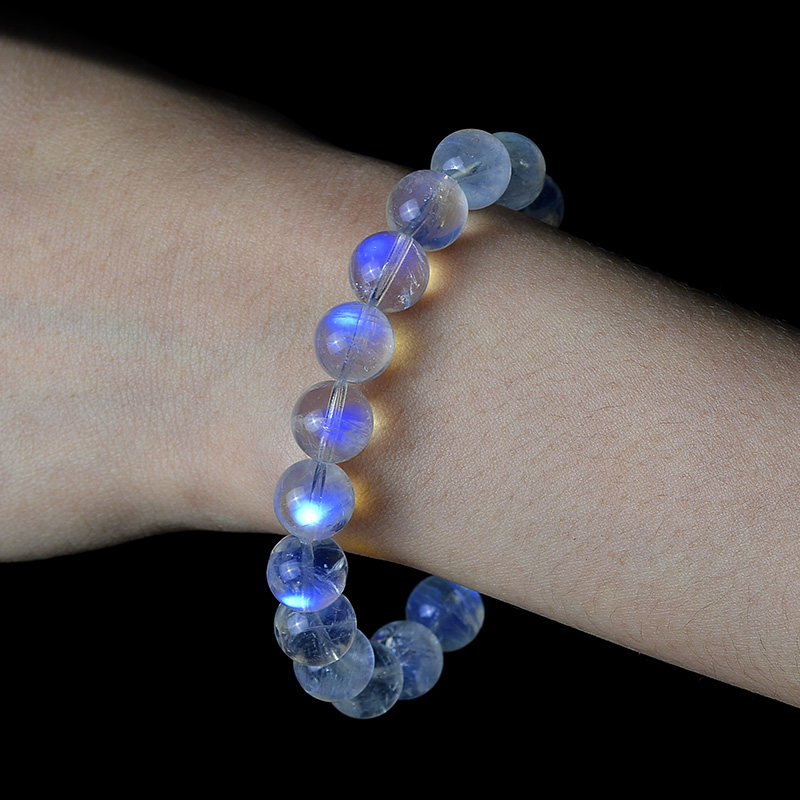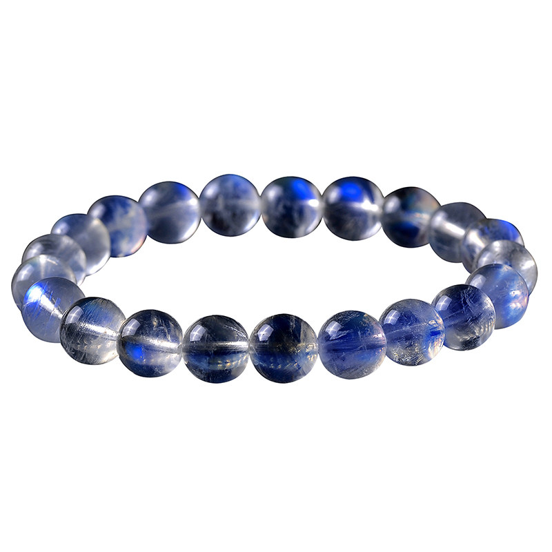 Collection grade natural Indian ice vitreous body strong blue light white moonstone bracelet female crystal single circle bracelet