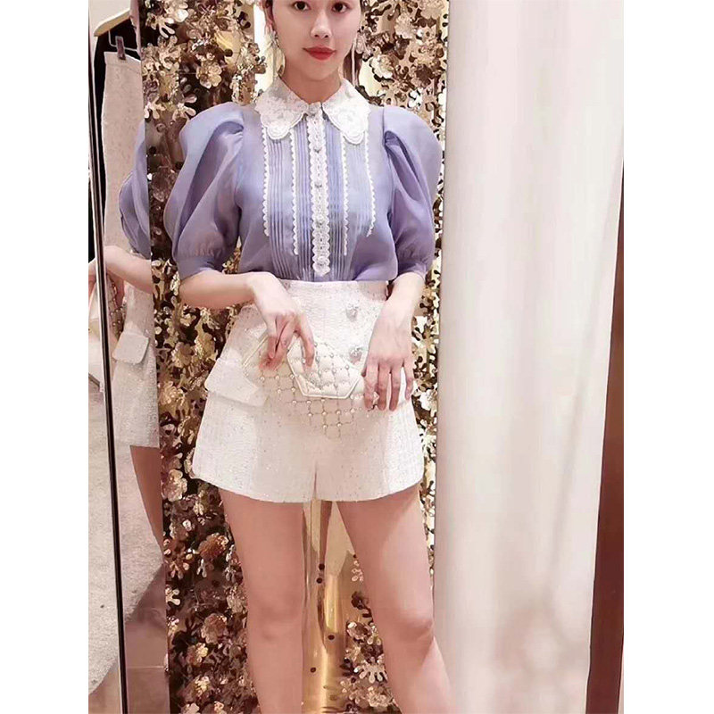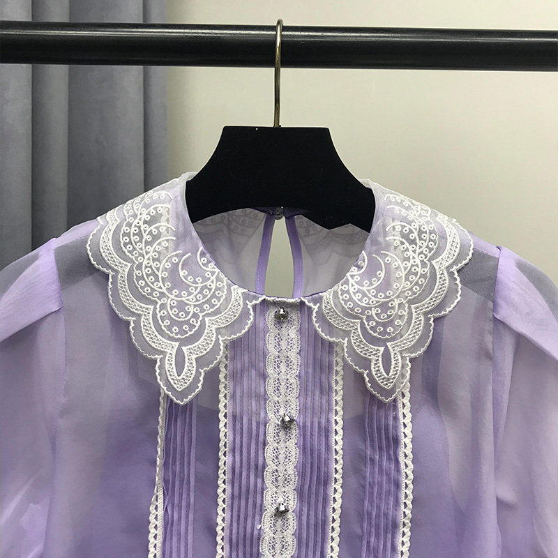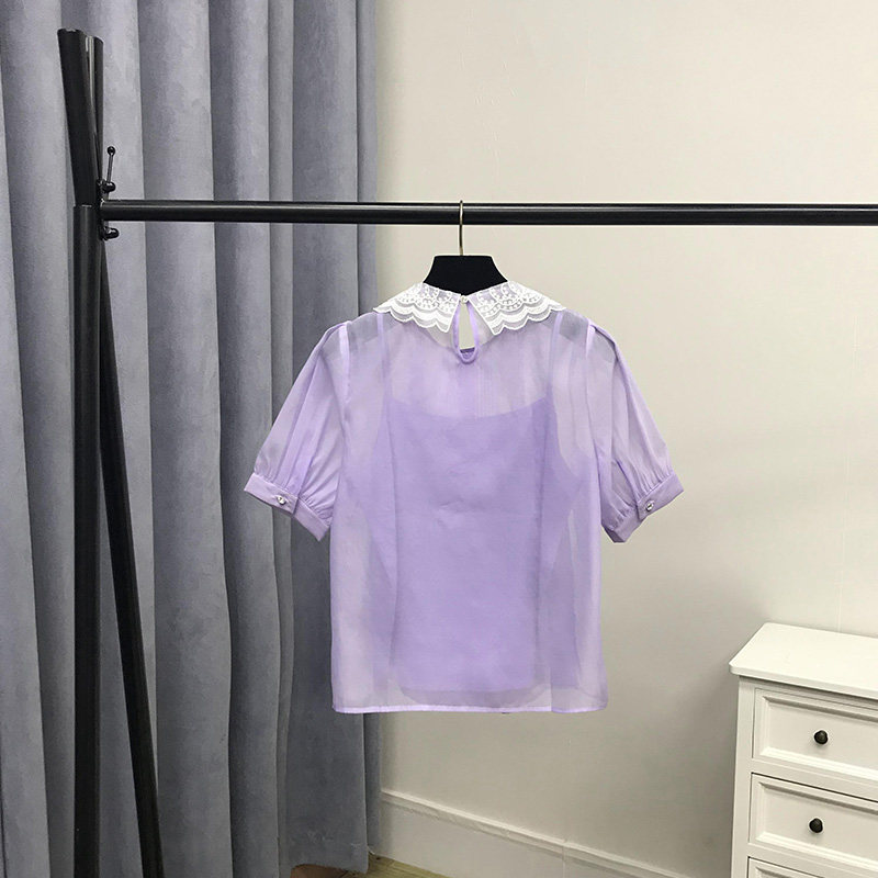 Light purple sniff coat 2023 new summer Korean short - sleeved small fairy doll shirt light - cooked snow - spinning