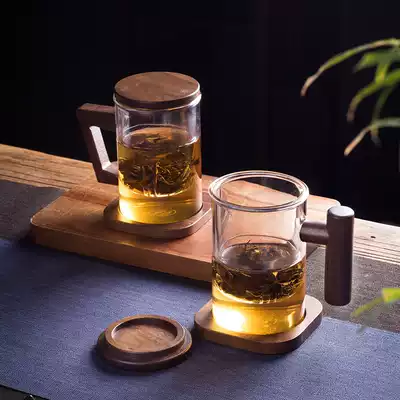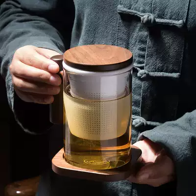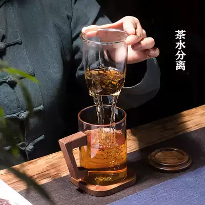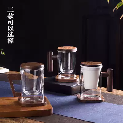 Shengcai tea water separation glass office Cup with filter inner cup wooden handlebar with lid mug home Cup