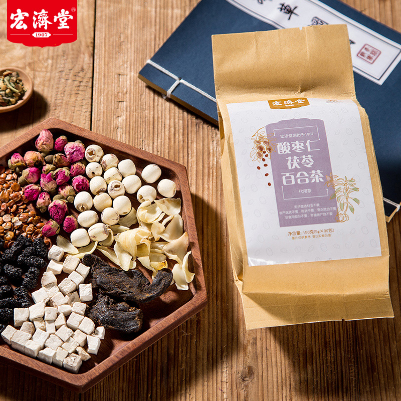 Hongjitang Flagship store Jujube Kernel and Poria Lily Tea 150g Poor quality sleep tea packaging Portable
