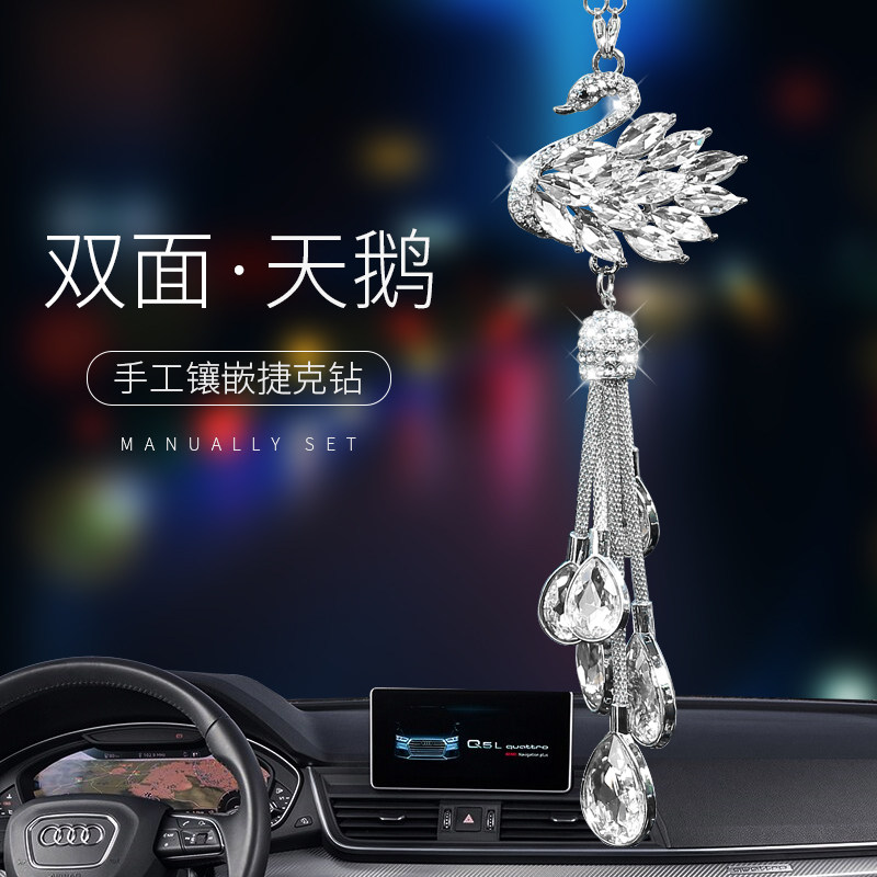 Korean car hanging car interior jewelry swan car mounted lady mounted on rear mirror crystal pendant