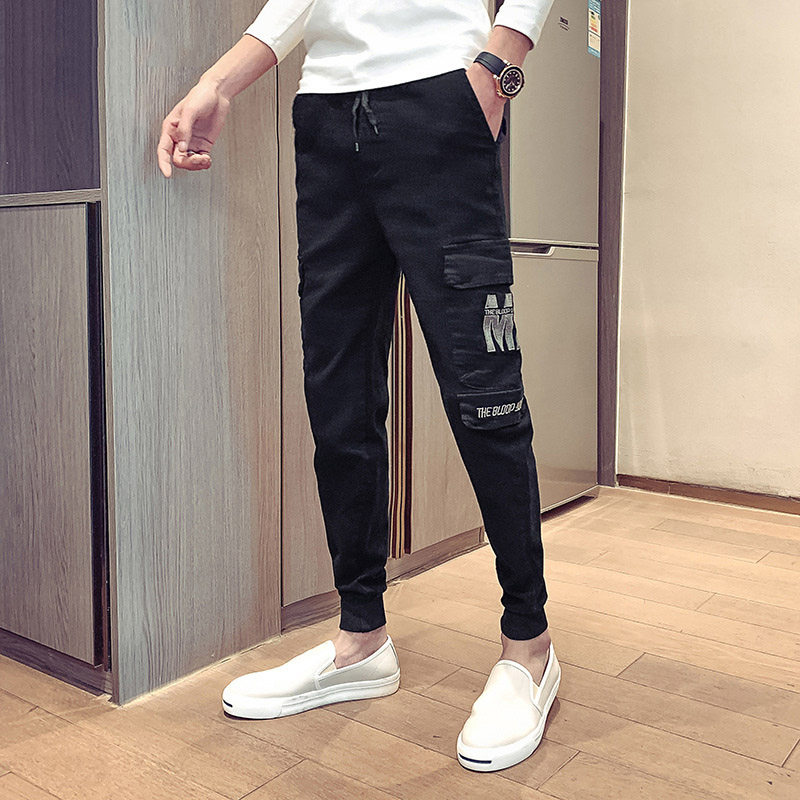 Nine-point pants men's slim feet Korean version trendy all-match ruffian handsome men's pants embroidery spirit guy casual legged pants