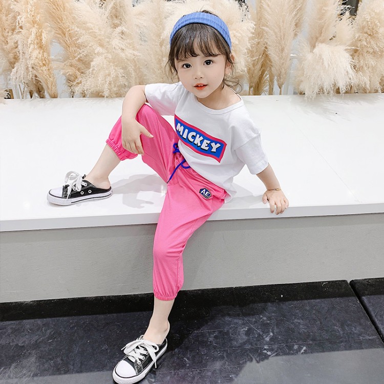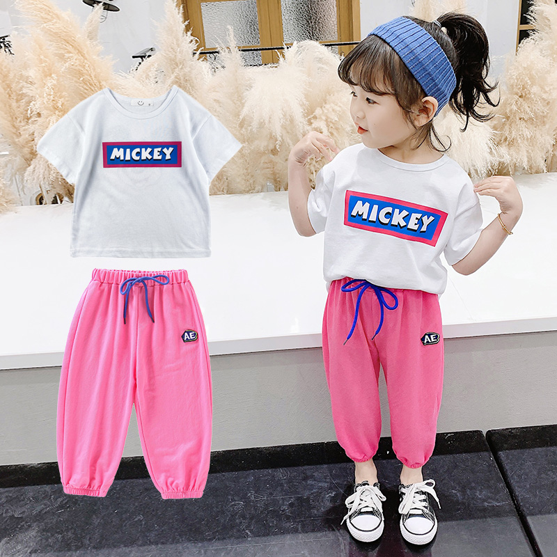 Girls Summer Summer Kit 2023 New Baby Ocean Short Sleeve Children Network Red Summer Children Sports Two Pieces Summer Summer