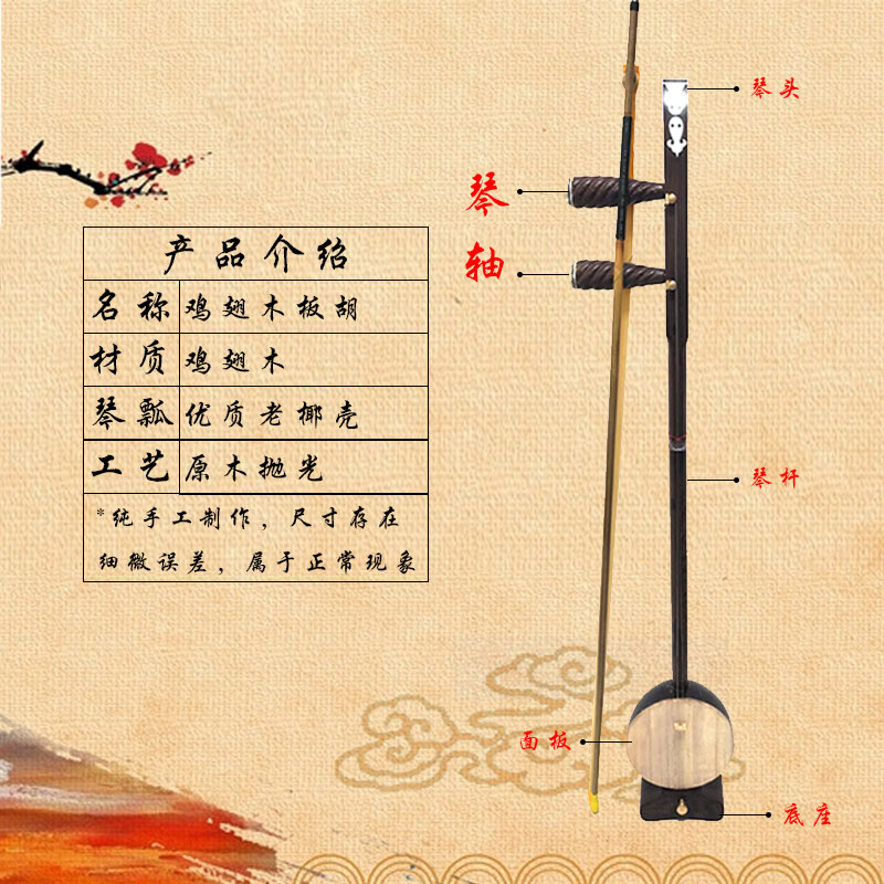 Qin Cavity Plate Hu Chicken Wings Wood Plate Hu Professional Qin Cavity Playing Plate Hu Mid-Tone Plate Hu Belt Box Accessories Plate Hu Musical Instrument