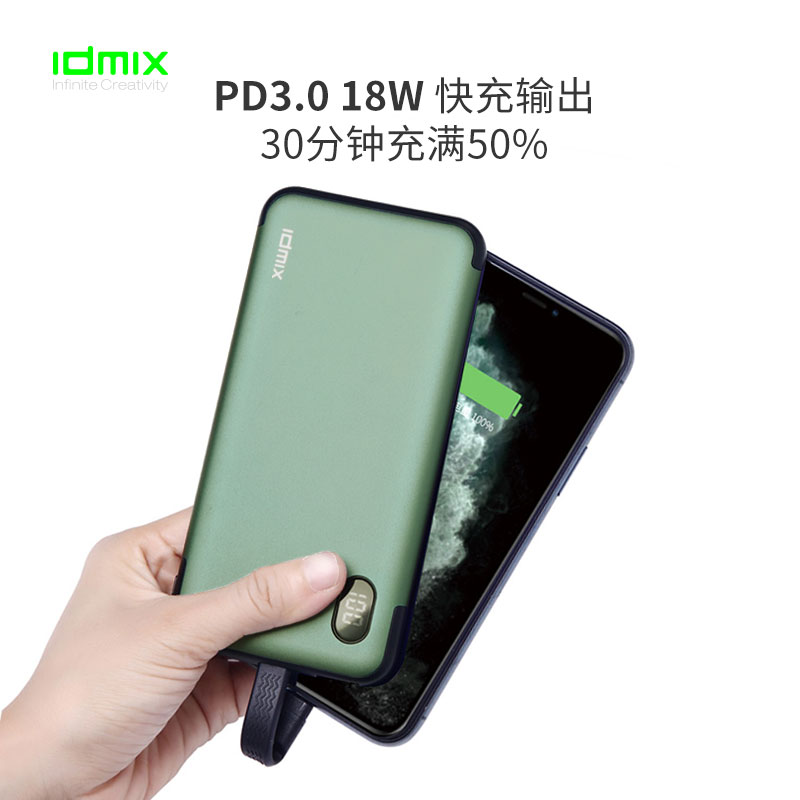 Idmix is suitable for iPhone12 fast charging PD18W mobile charging apple 13 self-belt line 10000mAh mobile power supply