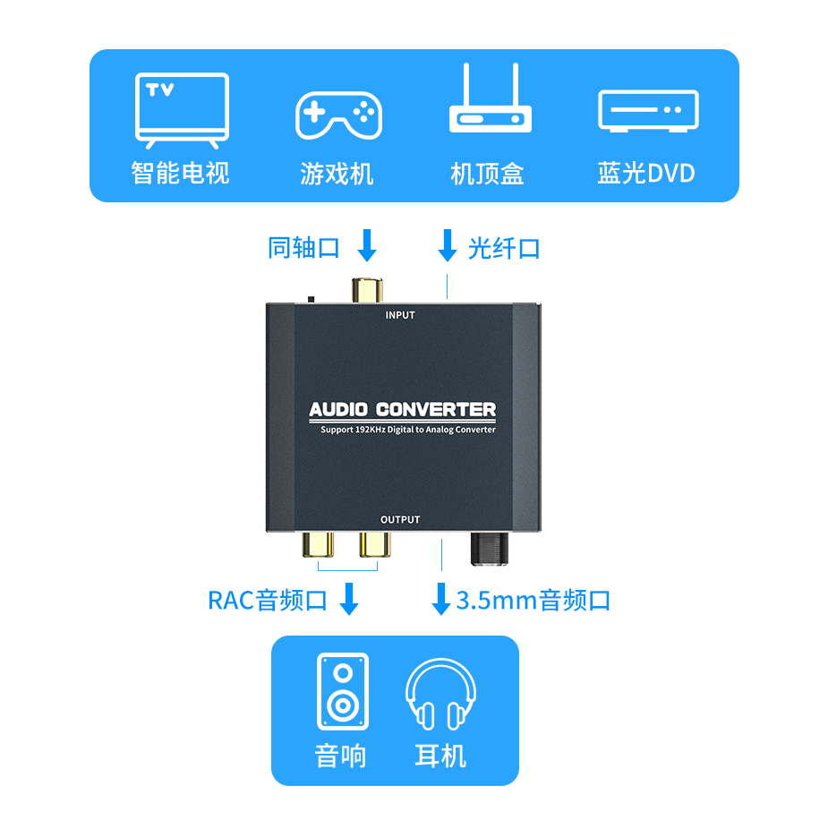 Digital fiber optic coaxial audio converter to analog double lotus RCA suitable for Hisense Sharp millet TV connected to audio power amplifier decoder spdif to 3 5 audio cable stereo