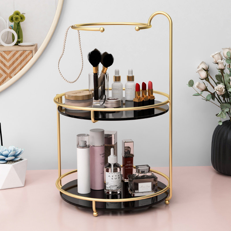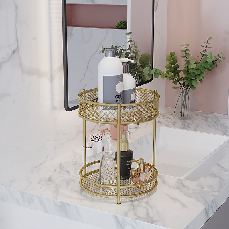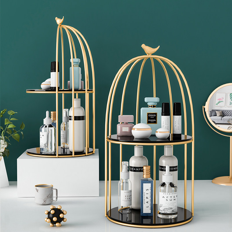 Double-layer round-desktop containing layer shelf double bird cage-desktop containing layer rack gold monolayer with mesh-desktop containing shelf