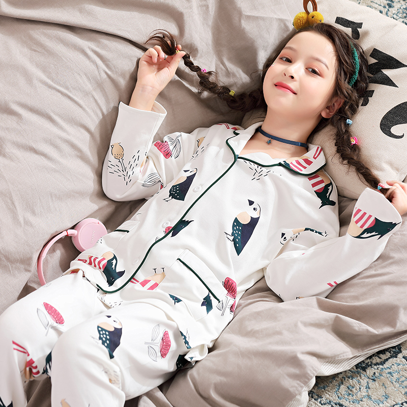 Children's pajamas Girls spring and autumn long-sleeved cotton suit Autumn and winter cotton medium and large children's thin models can be worn outside home clothes