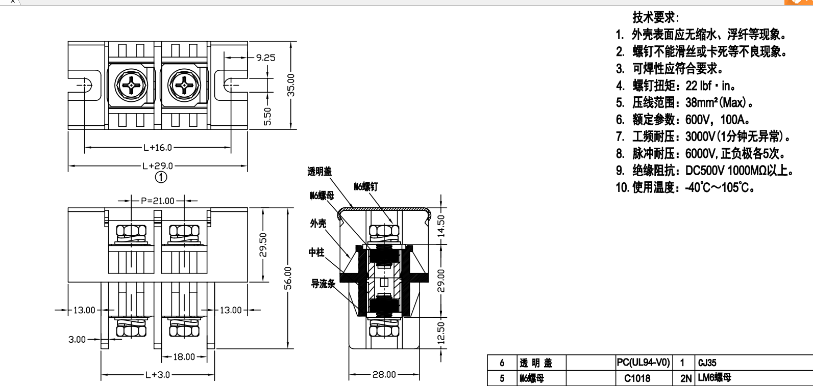 The new energy terminal block of the interdisciplinary terminal terminal block FTB100-11-02 DSTB38 600V100A