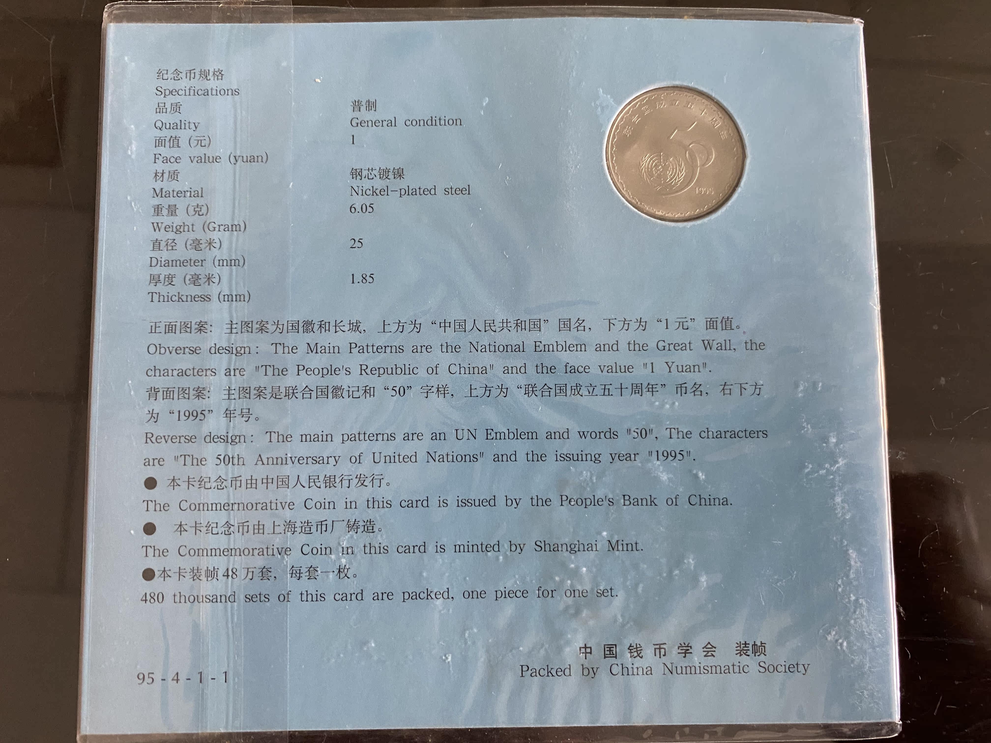 (Youth Souvenir Shop) 1955 UN established 50 Anniversary of commemorative coins with a new card-containing coin fidelity
