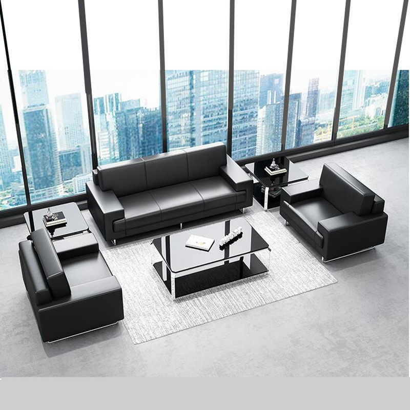 Big Money Business Office Sofa Tea Table Composition Black Leather Office Owner Genuine Leather Guesthouse Hotel Hall Reception