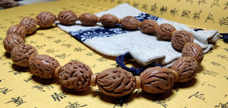 Wild hair peach core hand-held men's and women's text play hand string accessories 18 rosary beads pressure to open up evil to protect the peace peach Hu