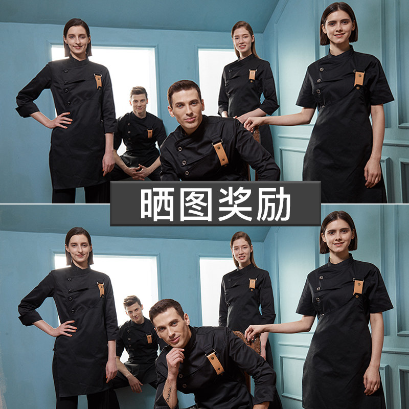 Guremi chef conserved male long-sleeved summer suit baking cake after baking cake, kitchen chefs serving short sleeves upscale