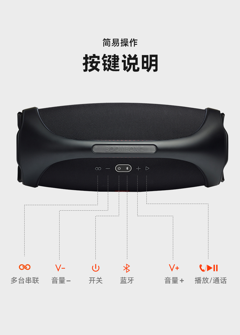 JBL BOOMBOX2 Music Ares 2nd Generation Wireless Bluetooth Speaker Portable Outdoor Audio hifi Bass Enhancement
