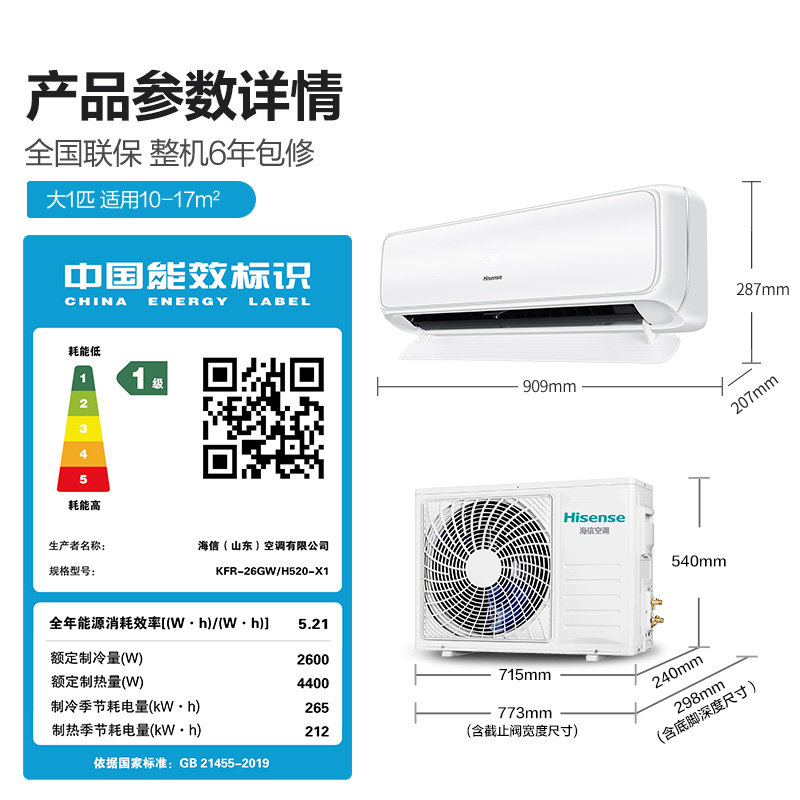 Hisense air conditioning hanger large 1 P new level frequency conversion bedroom cold and warm children wall hanging official flagship 520