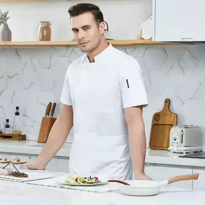 Summer breathable chef's clothing short sleeve custom hotel restaurant hot pot restaurant barbecue kitchen work clothes pure white set