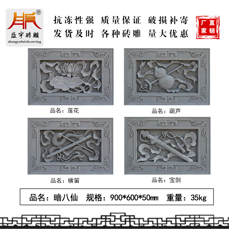 Shengyu 90 cm long dark eight immortals series brick carving Chinese tea house decoration lotus group fan fishing drum relief brick carving