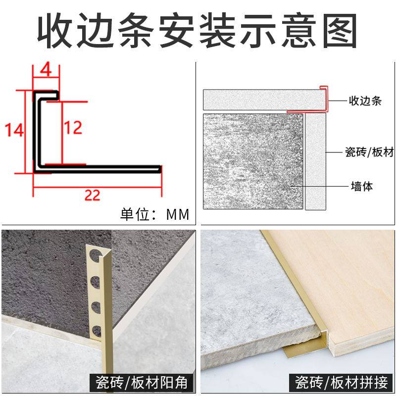 Tile collection edge strip Anti-collision protection strip Blocked Edge Titanium aluminum alloy closed side wall brick U type right angle pressure line Xin Mei Kok