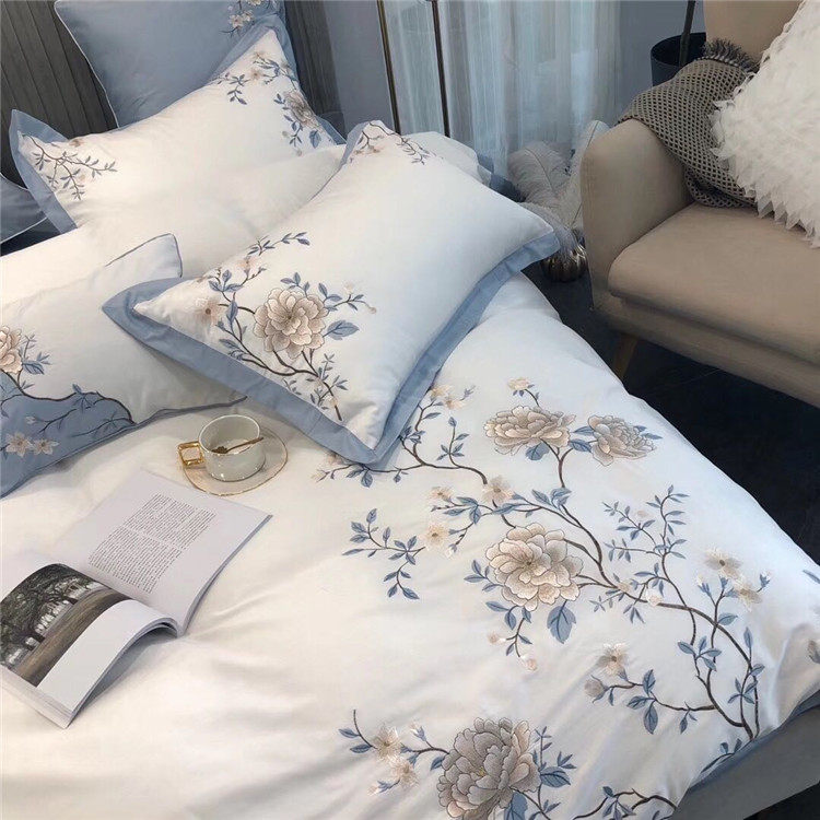 New Chinese-style 60S long-staple cotton four-piece set simple high-end embroidery bed sheet light luxury style 1 8m bedding