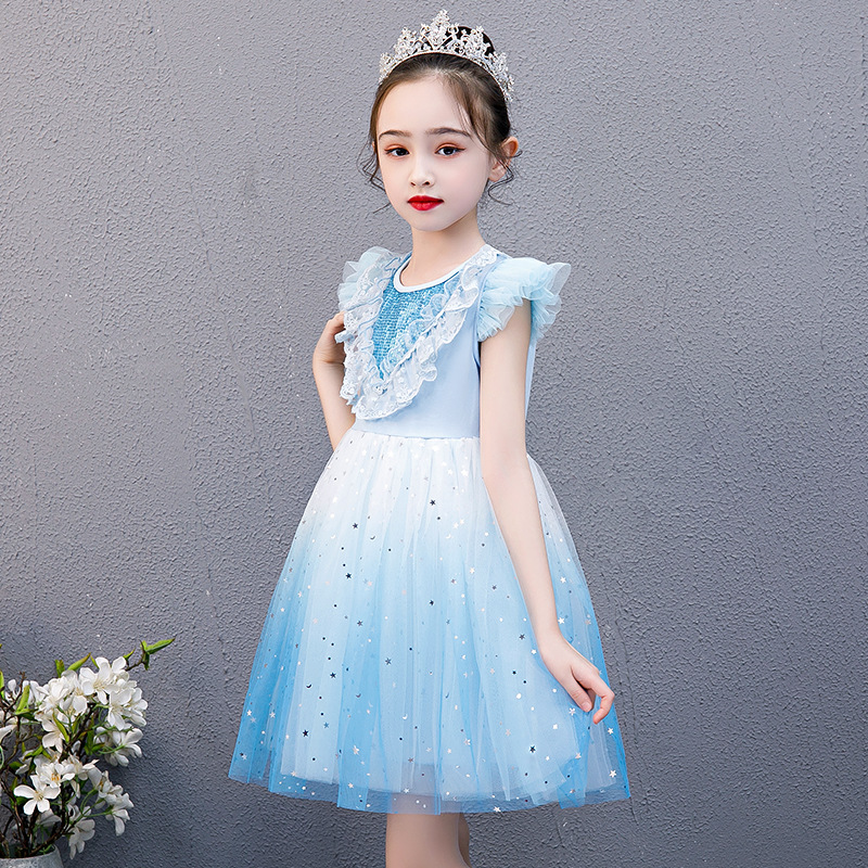 Ice and snow chic edge 2 Princess dresses Summer style Children's suit Girls dress up Aisha Aisha Aiesare Elsa Genuine Elsa Dress